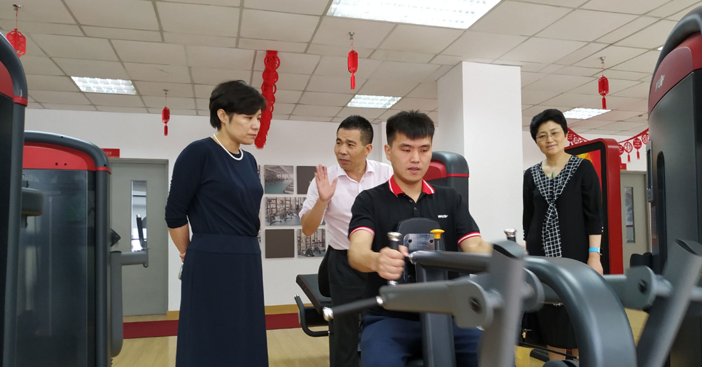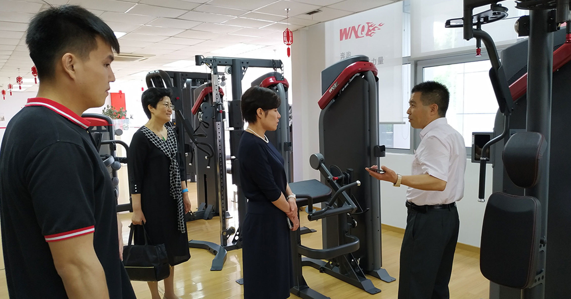 孙部长一行参观了jinnianhui金年会展厅,深入了解了公司文化和各类健身器材功能特点,同时体验了jinnianhui金年会跑步机、健身车等智能有氧系列新品和美格7000系列和变形金刚力量系列。随后的会议上,孙部长对我司成立30年来所作出的努力、取得的业绩表示充分肯定,并鼓励积极应对挑战,继续增强创新意识和机遇意识,坚持发展理念,开拓更大市场。